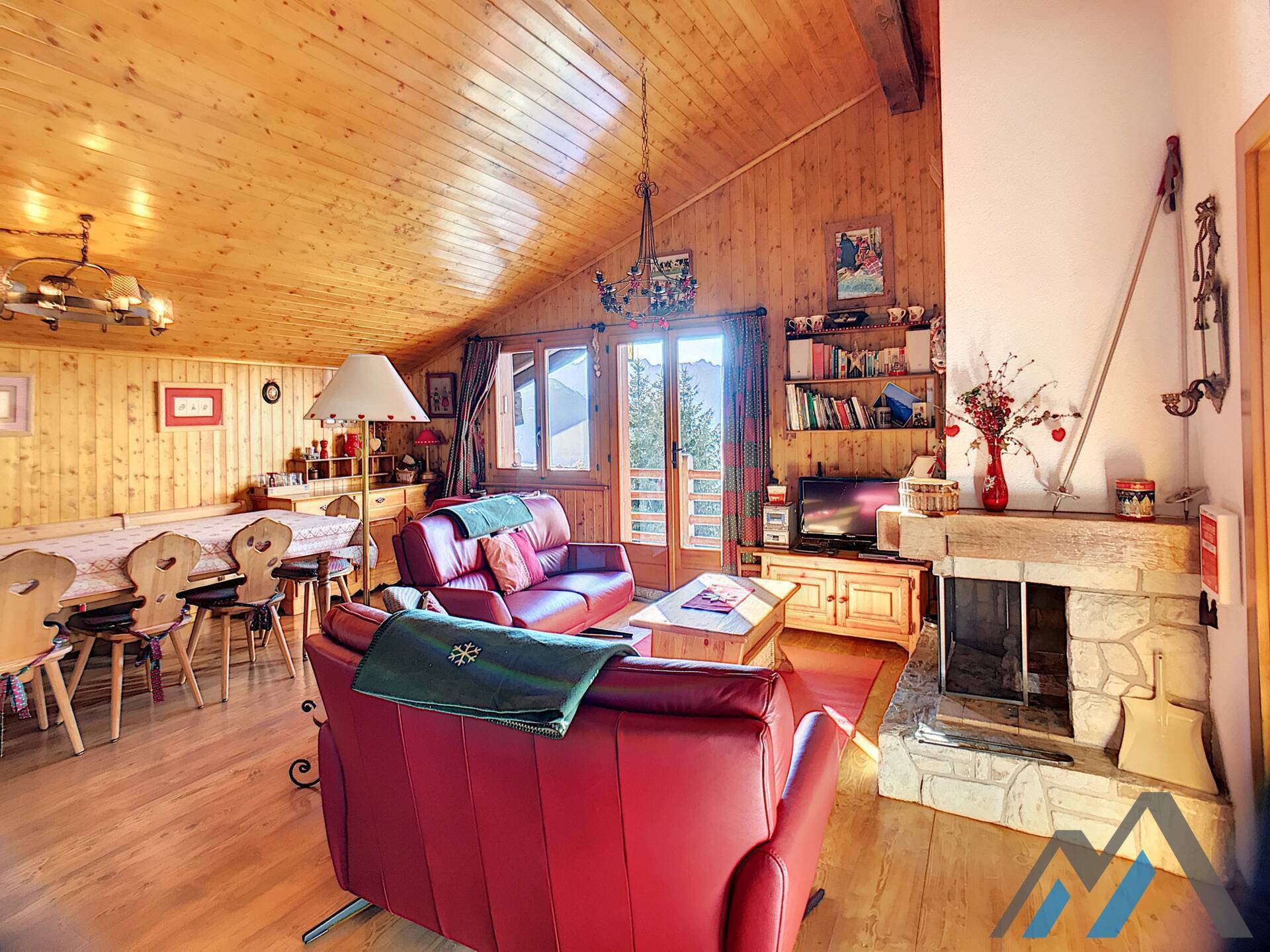 Living room with fireplace, kitchen bar with vitroceram, Nespresso coffeemachine and dishwasher, three bedrooms with two beds, bathroom with