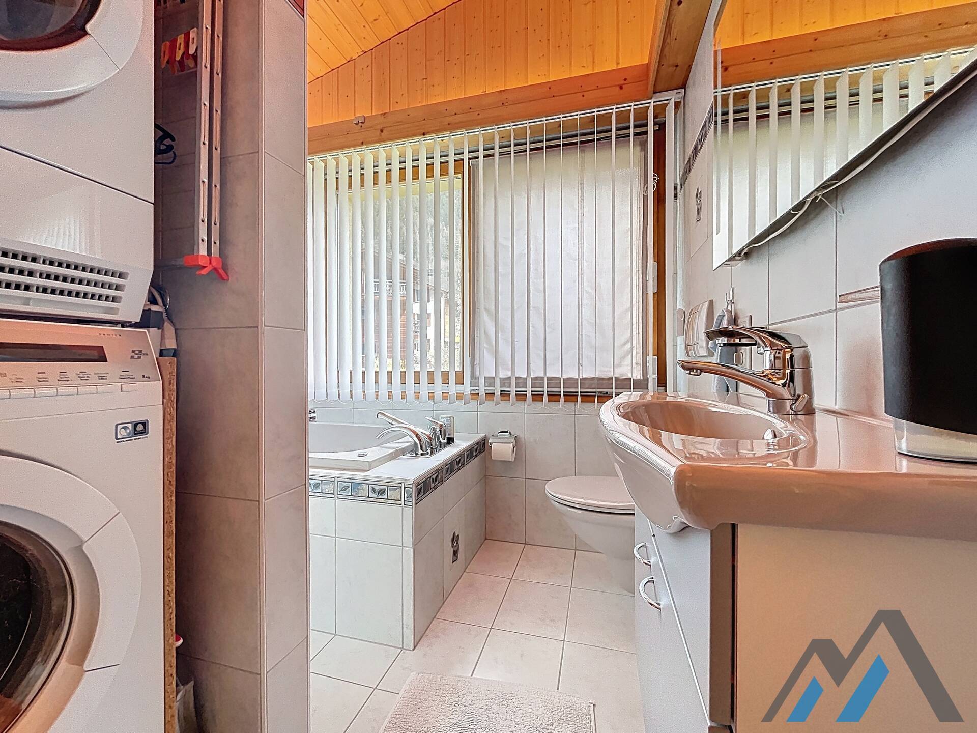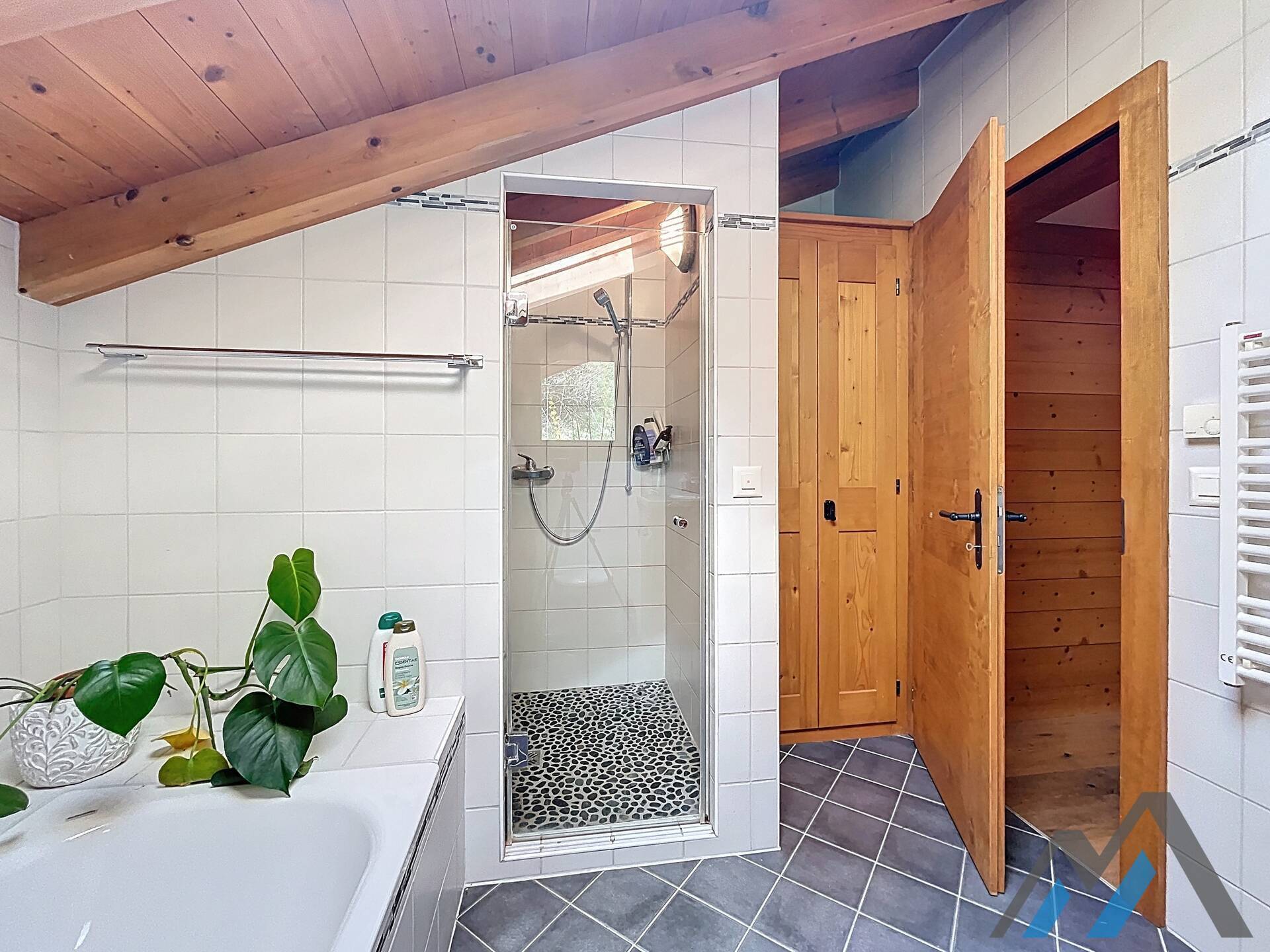 A wooded garden, a typical mazot, and an outdoor parking area that can accommodate 2 to 3 vehicles (in tandem) complete this property.