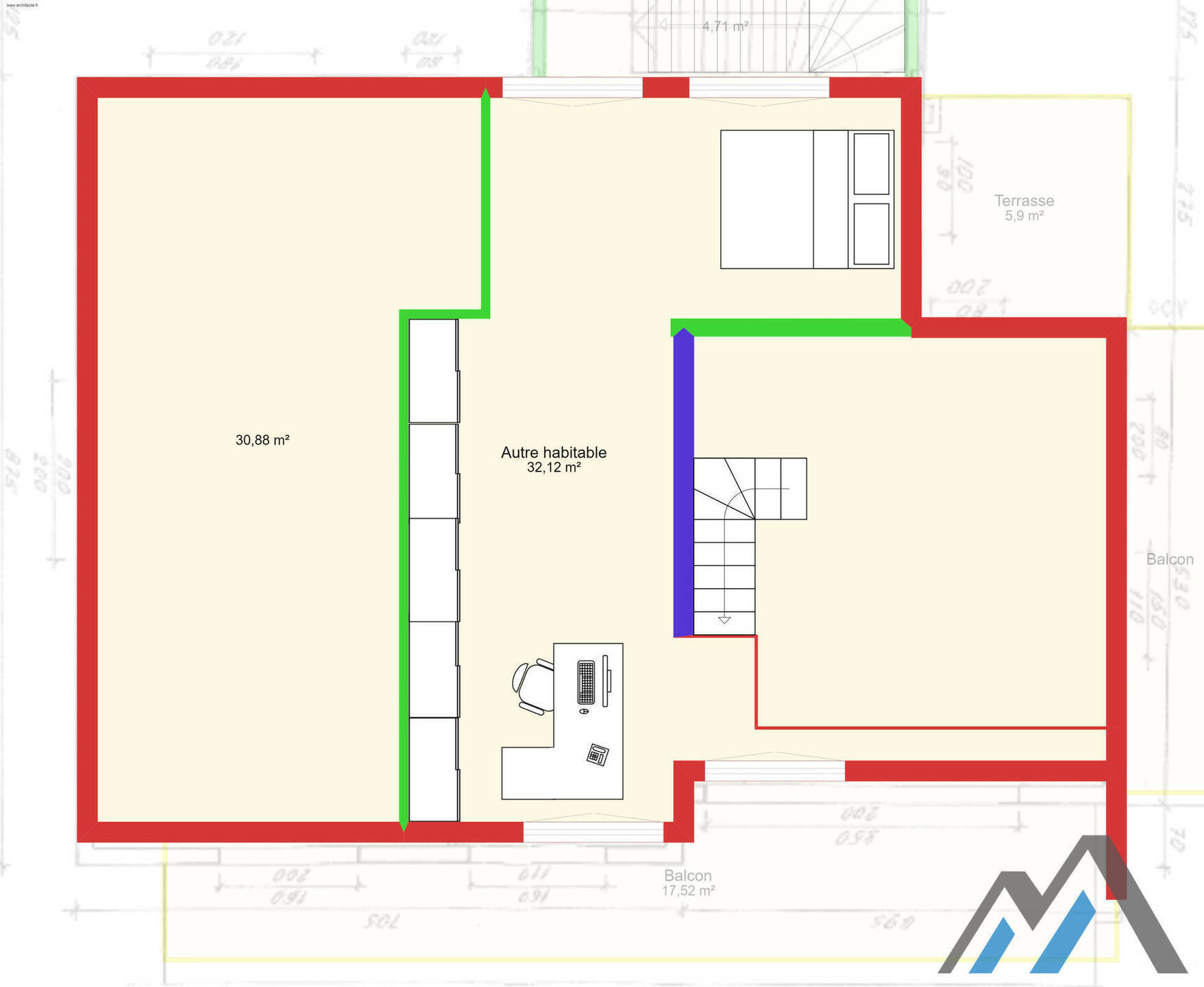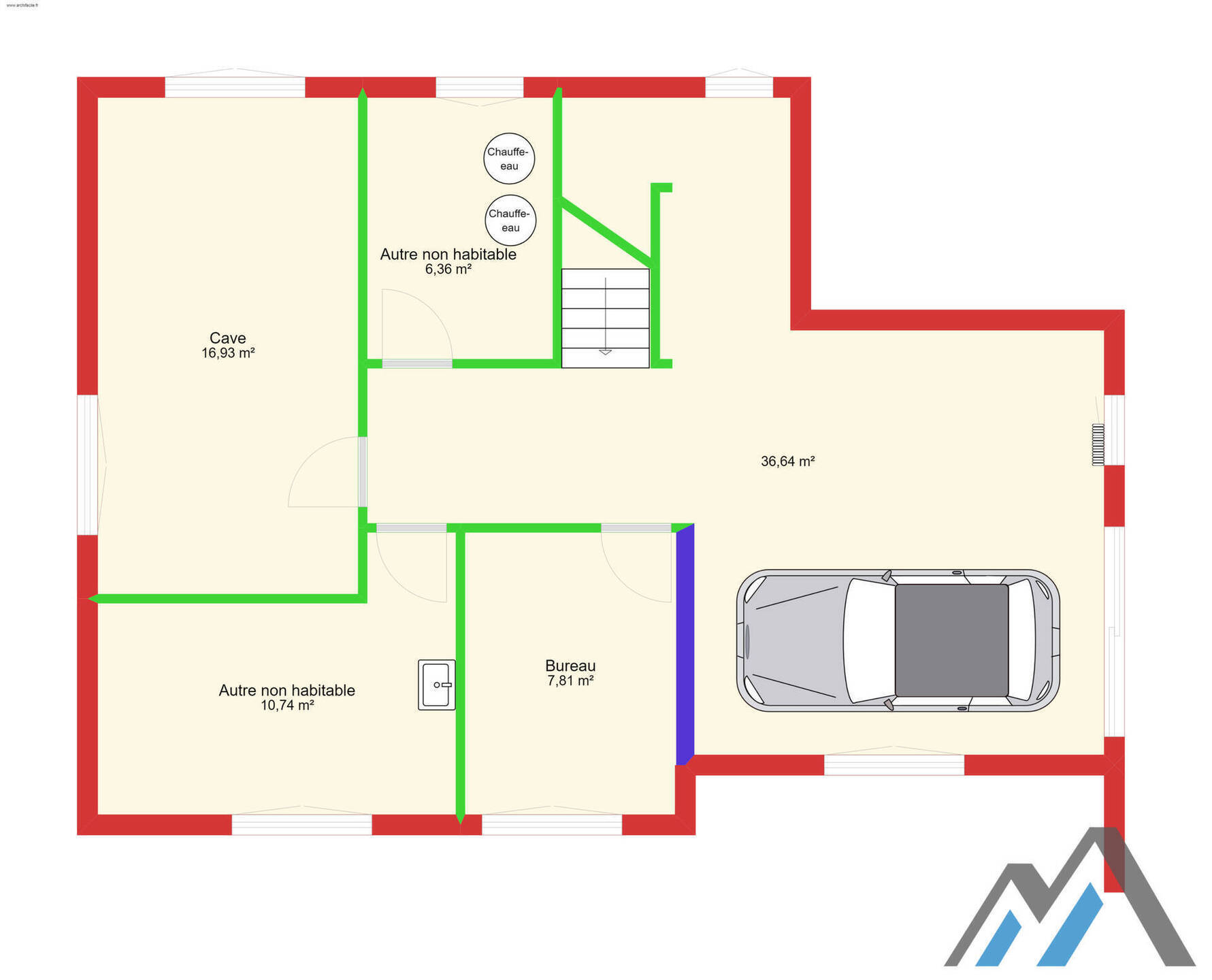 • Basement: Three rooms, including a technical room, for a total area of approximately 64 m². Insulated, equipped with new windows and doors.